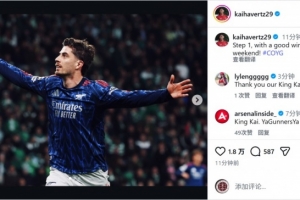 哈弗茨社媒晒出庆祝进球的照片,配文:“第一步,拿下一场美妙的胜利,周末见!”