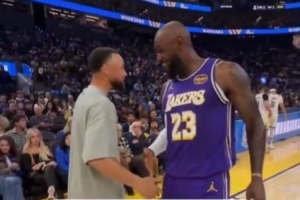 致敬老对手!库里今日入场时穿着詹姆斯经典战靴LeBron 10