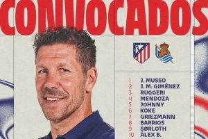 体育资讯4月17日讯 马竞将在国王杯决赛对阵皇家社会,马竞官方也列出了本场比赛的大名单。