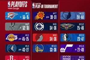 最新排名:马刺锁定季后赛 湖人8连胜稳居西3 活塞50胜东部首队!